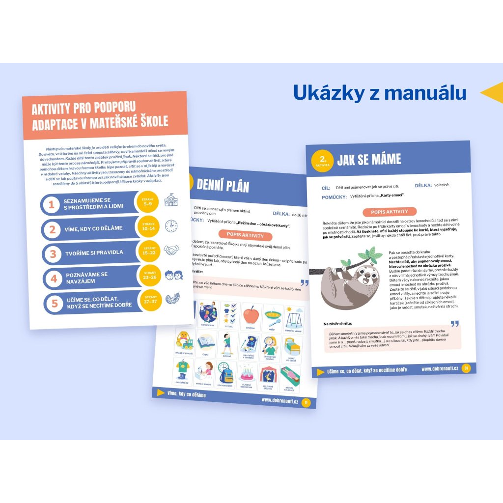 Zvýhodněný rozsáhlý a propracovaný soubor adaptačních aktivit, které podpoří děti při jednom z největších životních kroků – nástupu do školy a školky. Pomůže jim zvládnout změny, vytvořit bezpečné vztahy, osvojit si pravidla i zorientovat se v novém prostředí.