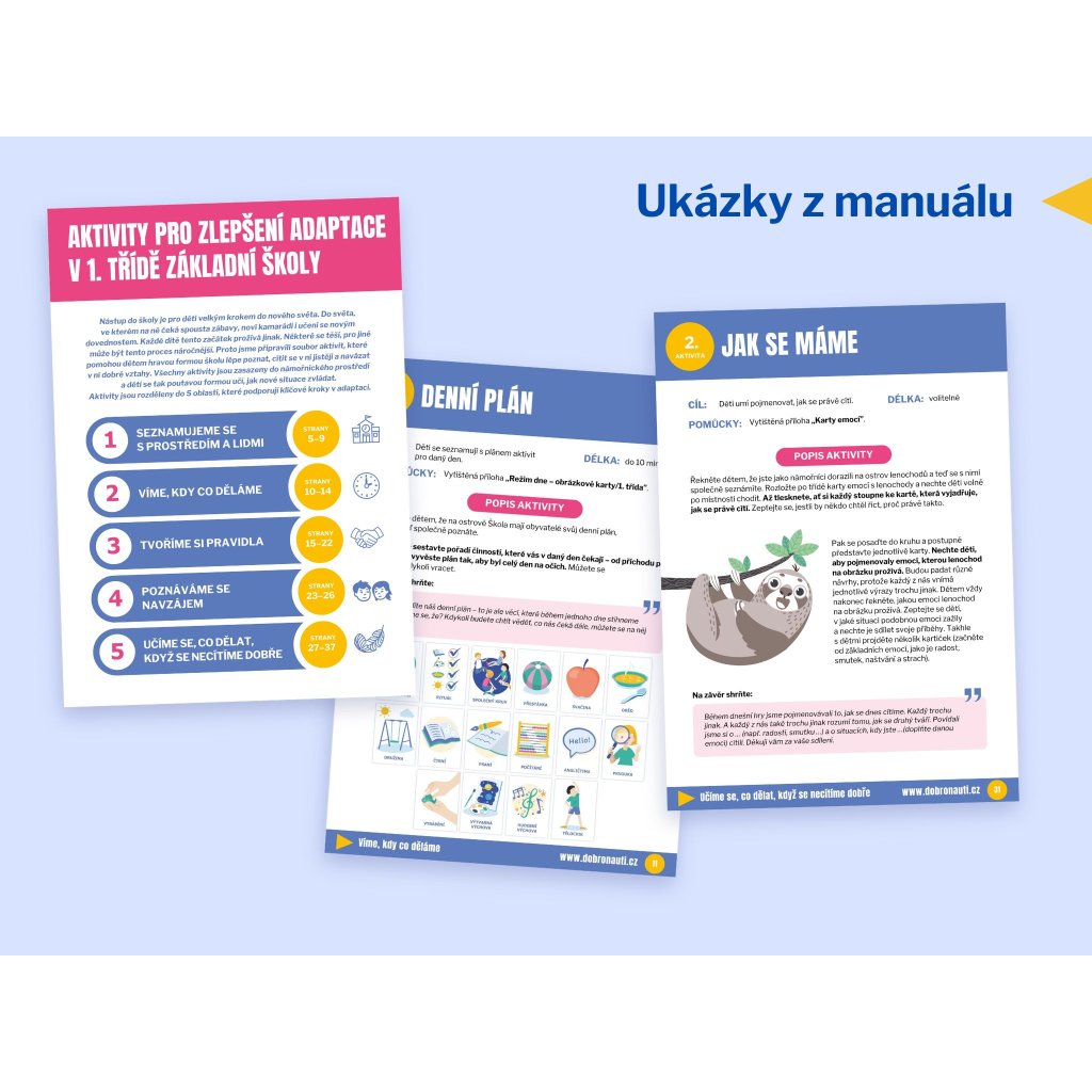 Každá oblast obsahuje metodické vedení, doporučení pro práci s emocemi, pracovní listy a prostor pro úpravy podle konkrétní třídy.